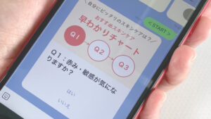 簡単な3つの質問に答えるだけで、今の肌状態におすすめのスキンケアケアがすぐにわかります。ご相談の前に、ぜひ一度お試しください!