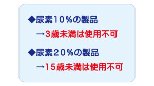 乾燥がひどい状態や、お肌の敏感な方は「尿素配合」クリームにご注意ください