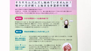 そろそろムズムズし始めていませんか?暖かい日が続くと始まる手湿疹の対策