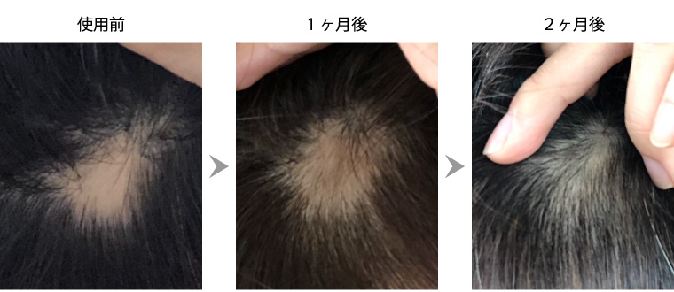 使用していた写真の箇所はかなり生えてきています!元々多発的な脱毛症なので、今は他にも幾つか新しい脱毛箇所が現れておりますが、髪の毛が全体的に少し丈夫になっている感覚があるのです。脱毛箇所はまた新しく出来てはいても、これは嬉しい変化です!