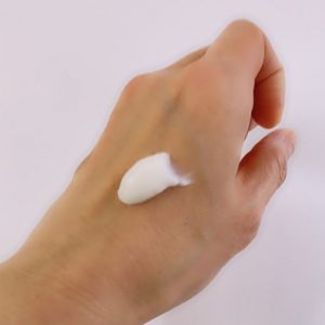 保湿をするとかゆくなる方は、ケアを始める前に手を水道水で流すひと手間をプラスしてください。そして、軽く手肌の水滴を拭いたら水分が残っている状態で保湿剤を塗布します。これだけで随分違うと、驚かれる方続出です! - 次に「お肌やわらかクリーム集中ケア」を塗布します。