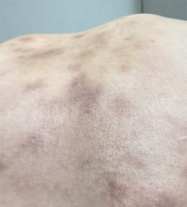 子供のころには肌トラブルがあったものの、しばらくは治まっていたところ、40歳のころに背中にかゆみがではじめて、病院でもらった薬をぬればなんとか治まっていたそうです。