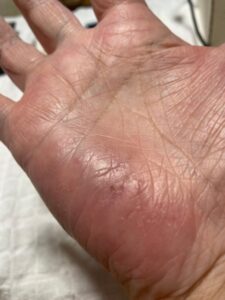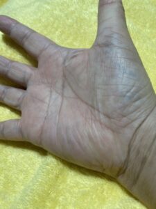 気づいたら、三日目位に赤みがなくなっており掌の水疱も消えていました。指の節の赤みと 切れも治ってます。