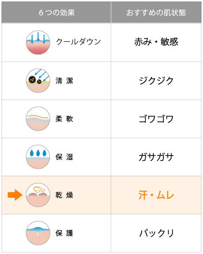 保湿クリームにさえ刺激を感じてかゆくなる敏感な状態や、汗ムレが原因の肌悩みにおすすめします。保湿は必要でも、塗布すると刺激を感じてしまう際は、保湿クリームの前又は後にパウダーをやさしく擦り込みます。