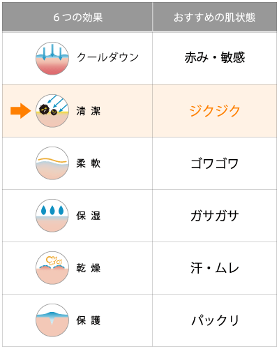 ガサガサが急に湿った状態にかわったなど、突然状態が変化した際には、肌表面の環境を弱酸性に整えて肌表面を清潔に保つケアに切り替えます。乾燥が気になる場合も、必ずソープを使って洗いましょう。ポイントは過剰な保湿を控えて、必要最低限の保湿効果との併用です。ジクジクしている場合は、一旦保湿は控えて切り替えます。