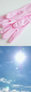 ゴム手袋の素材が天然ゴムの場合、アレルギー物質の水溶性たんぱくが内部の蒸れで溶け出すため、綿手袋を装着しても防ぐことができません