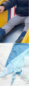 暑さ対策で首にまくひんやりするタオルを首に巻いて、汗と紫外線対策をしてあげてください。